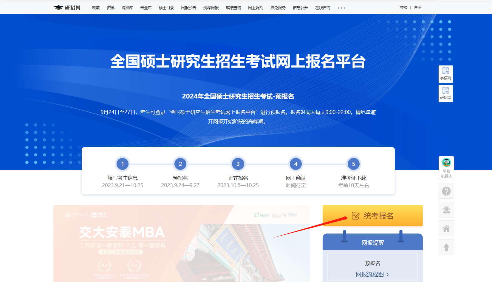 1.考生登陆“中国研究生招生信息网”