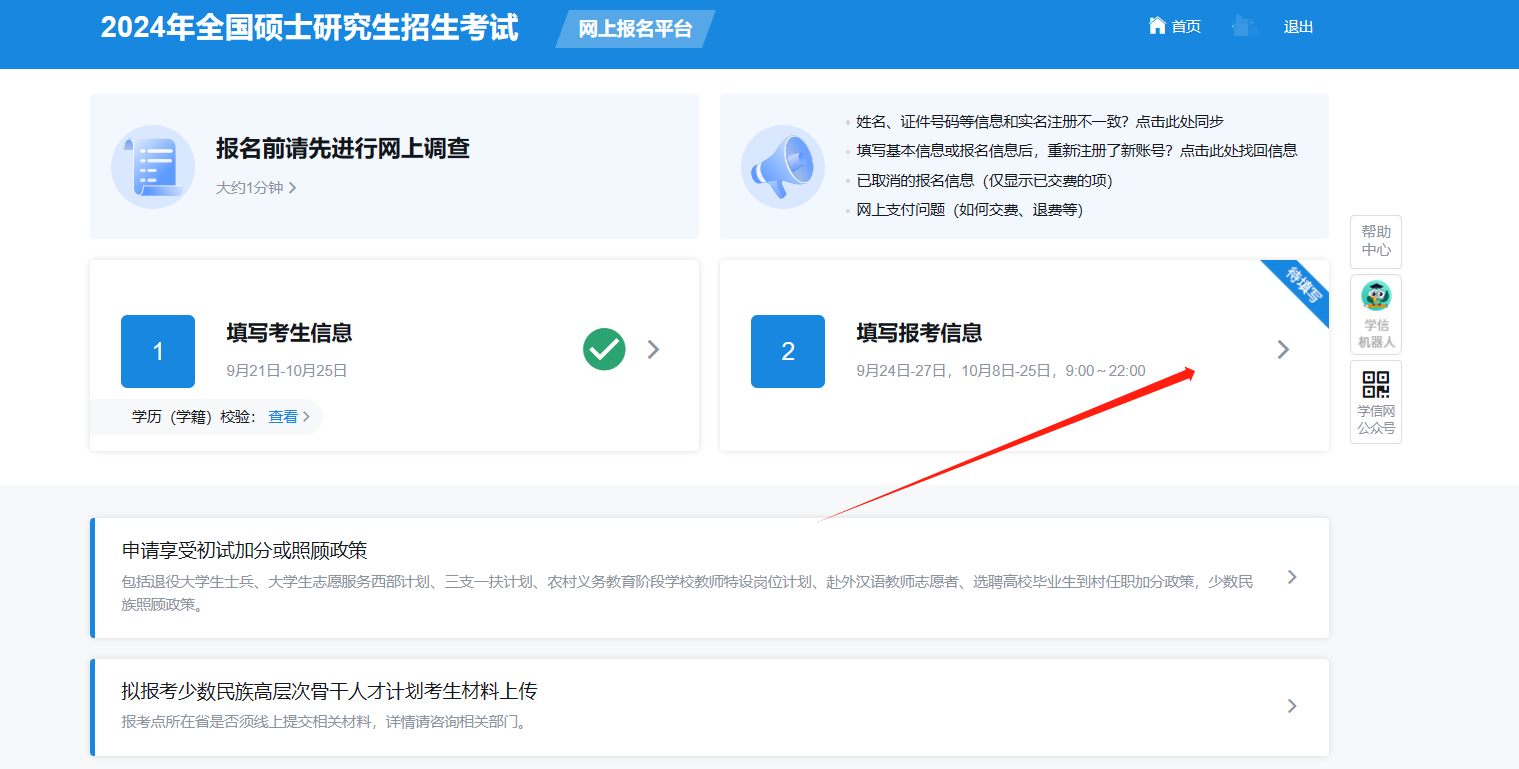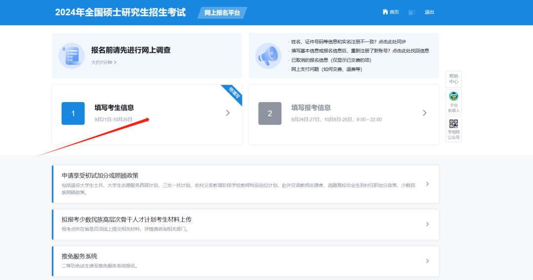 1.点击“填写考生信息”,确认实名信息。