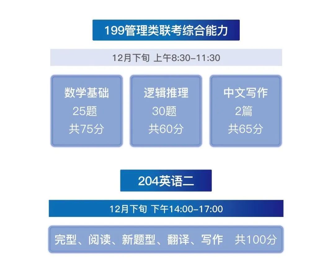 管理类综合(满分200分,考试时间180分钟),其中包含数学基础(75分)、逻辑推理(60分)、写作(65分)。
