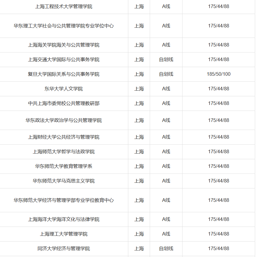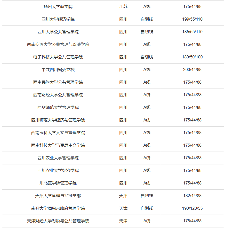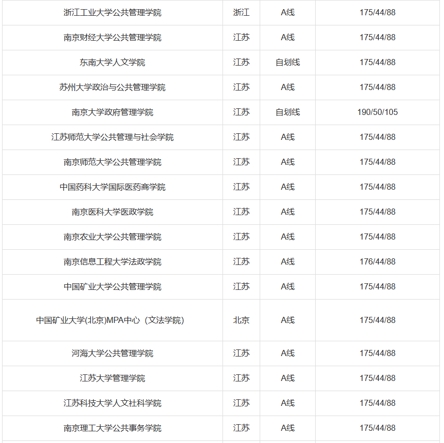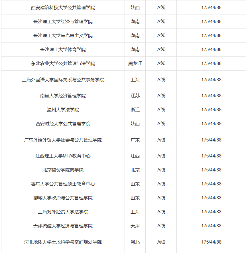 国家A类线:总分175分,英语44分,管理类联考88分