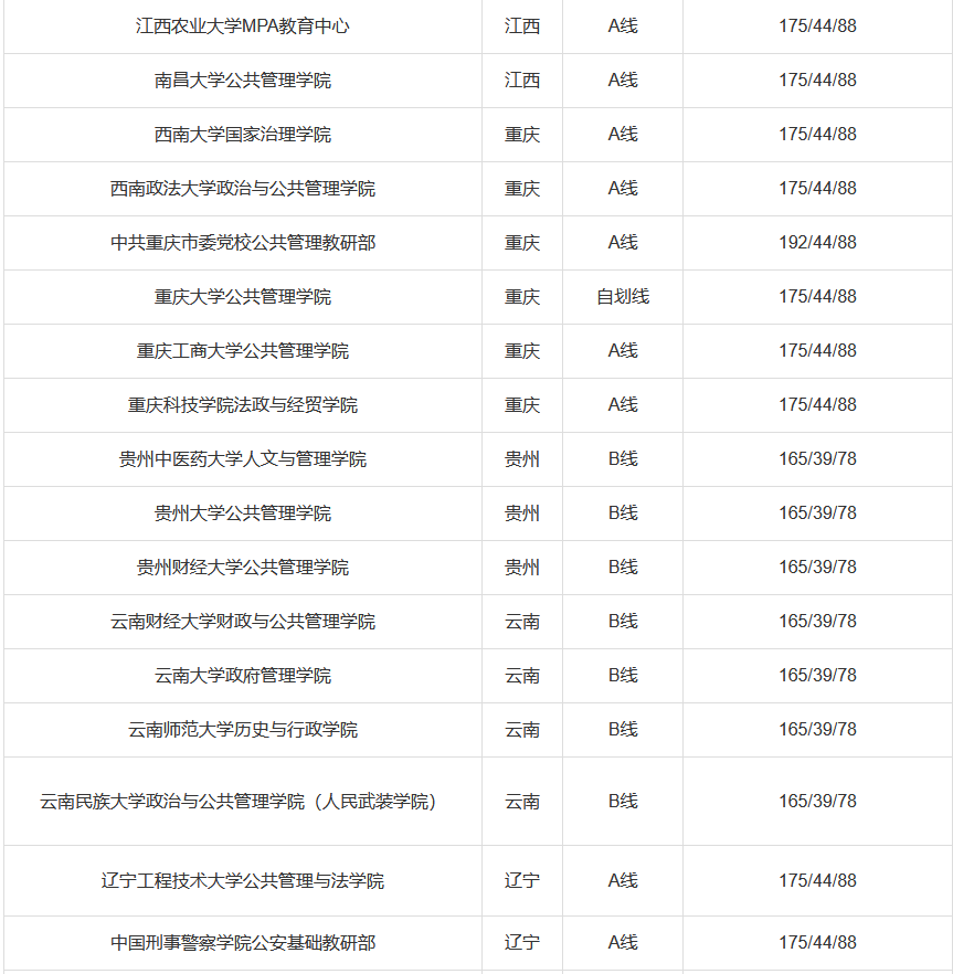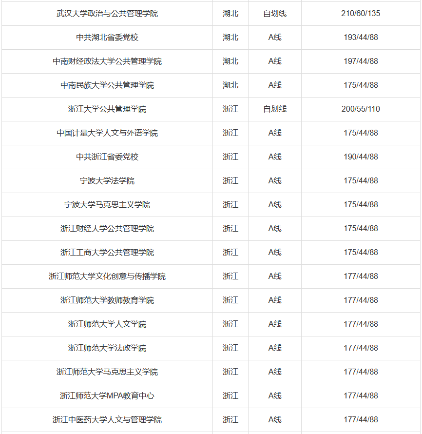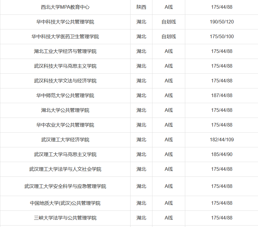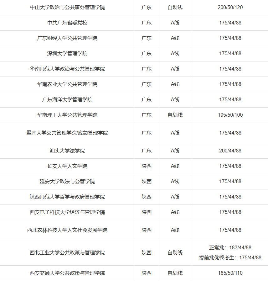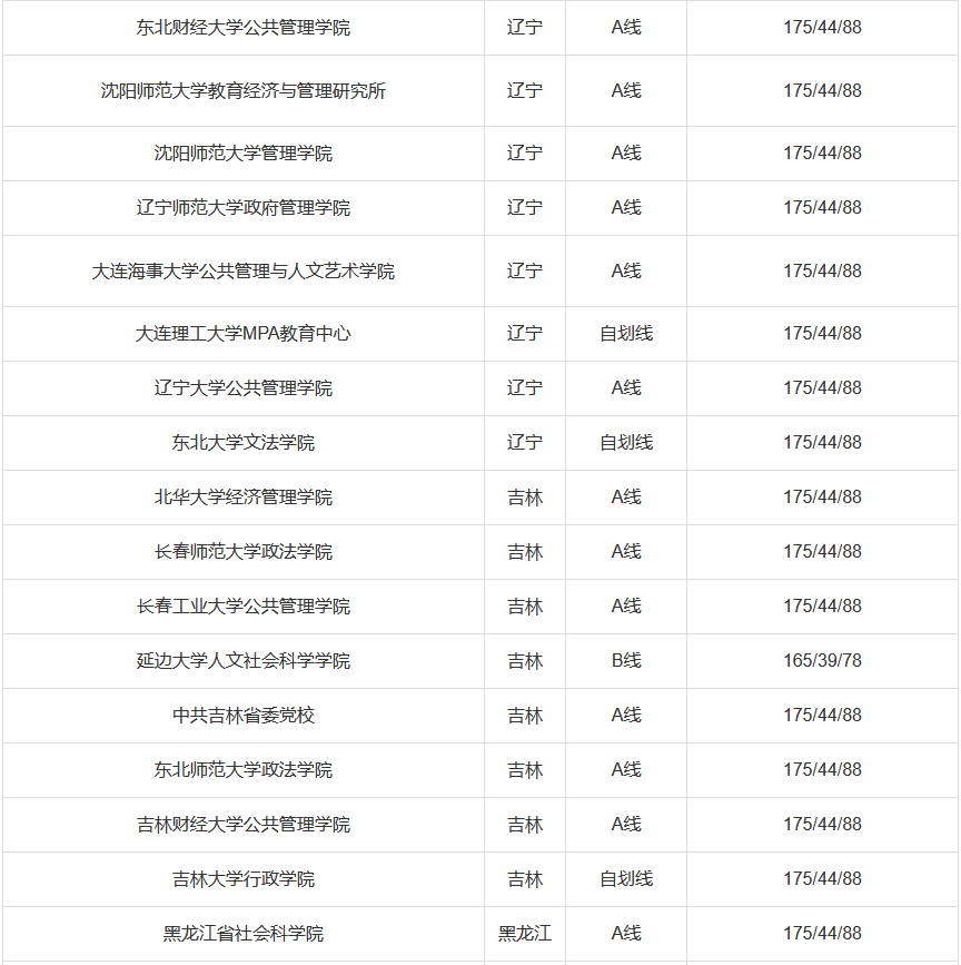 国家A类线:总分175分,英语44分,管理类联考88分