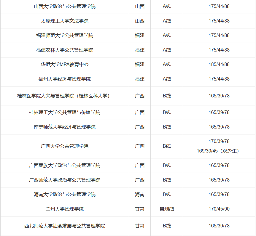 国家B类线:总分165分,英语39分,管理类联考78分
