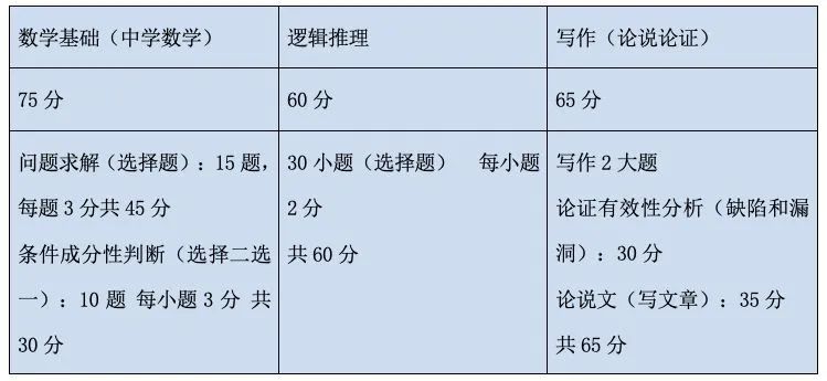 管理类联考总共考两门科目:管理类综合能力和英语二。其中管综考数学、逻辑和写作,数学考的是初等数学,英语二的难度也要低于英语一的考试难度。